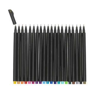 - 20 fineliners med spets på 0.4 mm. Pennorna är bekväma att använda och ger ett precist grepp tack vare deras slanka (Ø 8 mm) pennkropp. Total längd: 15,5 cm.