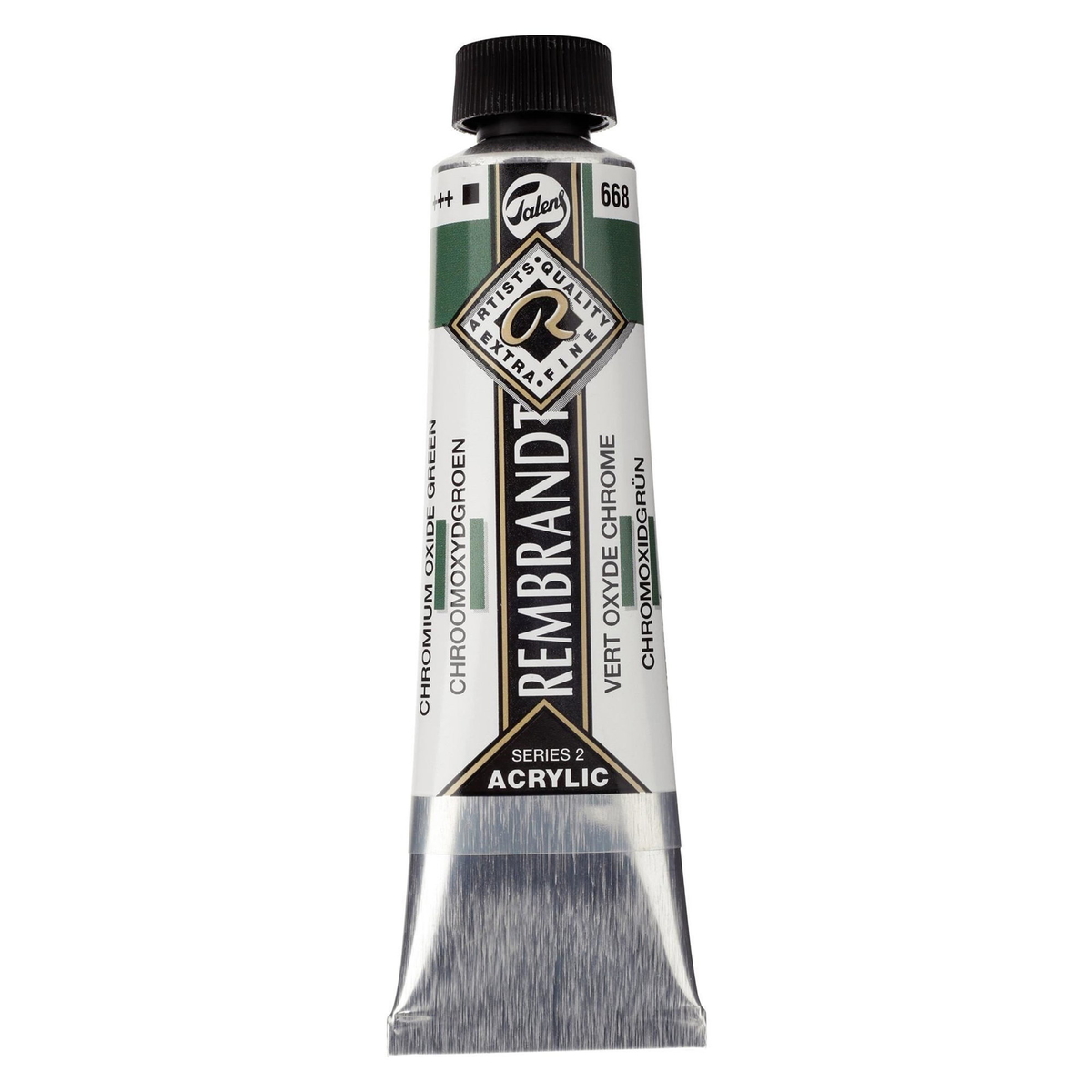 Kadmiumfärger: Rembrandts akrylfärger inkluderar kadmiumfärger av en typ som är mindre skadliga för miljön. Utöver dessa innehåller sortimentet kadmiumsubstitut under pigmentnamnet “azo” och “naphthol”, vilka också är ljusäkta. Dessa färger är mindre expansiva och något mindre transparenta.