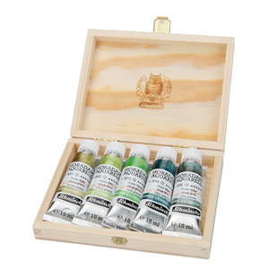 Här kan du välja mellan 8 olika set – 1 för varje tema. Setet kommer i en snygg trälåda och innehåller 5 stycken supergranulerande färgnyanser i 15 ml tuber.